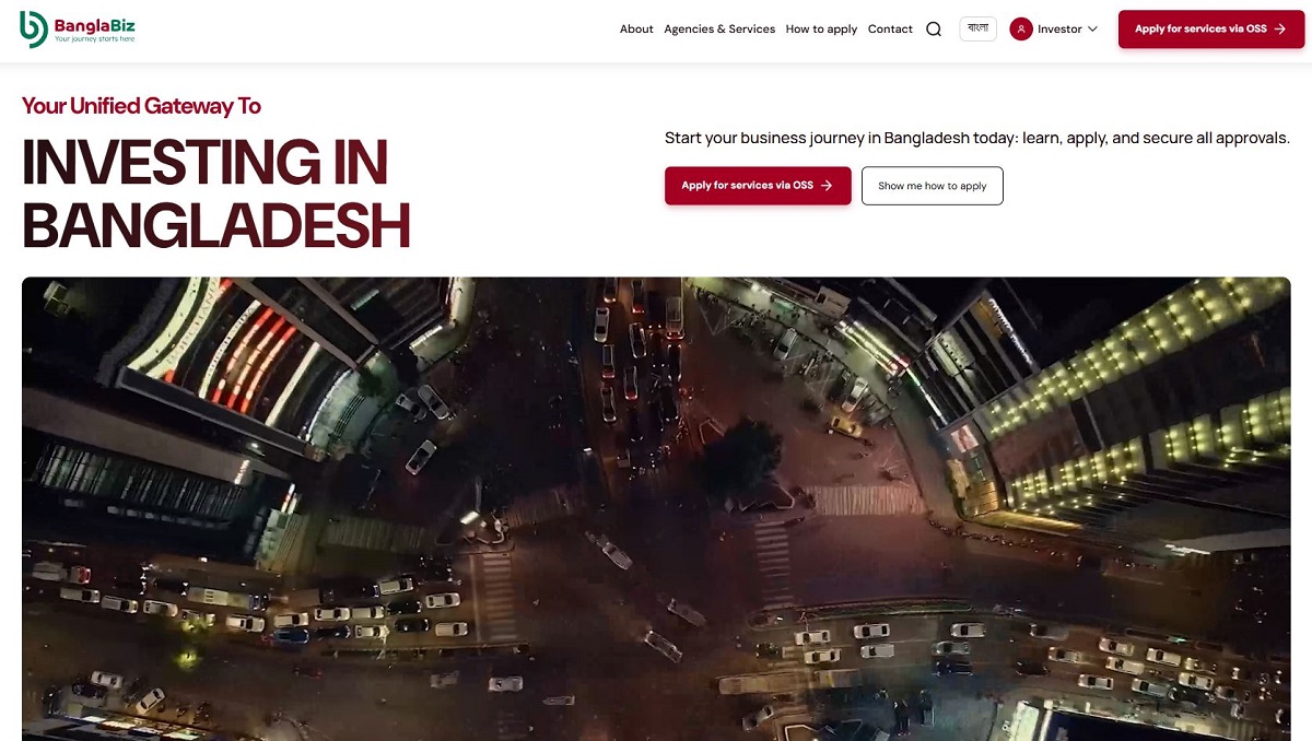 For the first time, the One Stop Service (OSS) portals of five key Investment Promotion Agencies — BIDA, Bangladesh Economic Zones Authority (BEZA), Bangladesh Export Processing Zones Authority (BEPZA), Bangladesh Hi-Tech Park Authority (BHTPA), and Bangladesh Small and Cottage Industries Corporation (BSCIC) — are connected under a single interface. Investors will also be able to access the Public Private Partnership Authority through the BanglaBiz homepage.