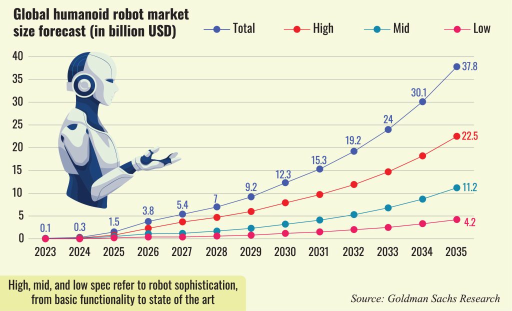 Countries with low birth rates and an aging population will soon face a shortage of human labor, and companies working on humanoid robots are aiming to address this problem. The pace of developments and the market opportunity are so vast that Goldman Sachs has recently revised its prediction and is forecasting a 38 billion USD market by 2035.