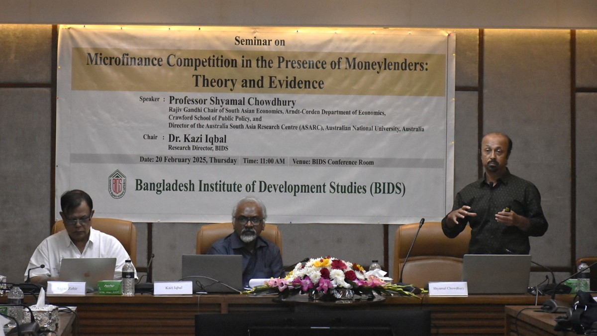 Bangladesh Institute of Developmental Studies (BIDS) held a seminar on Shyamal Choudhury, Prabal Roy Choudhury, and Joeri Smits’ paper, ‘Microfinance Competition in the Presence of Moneylenders’.