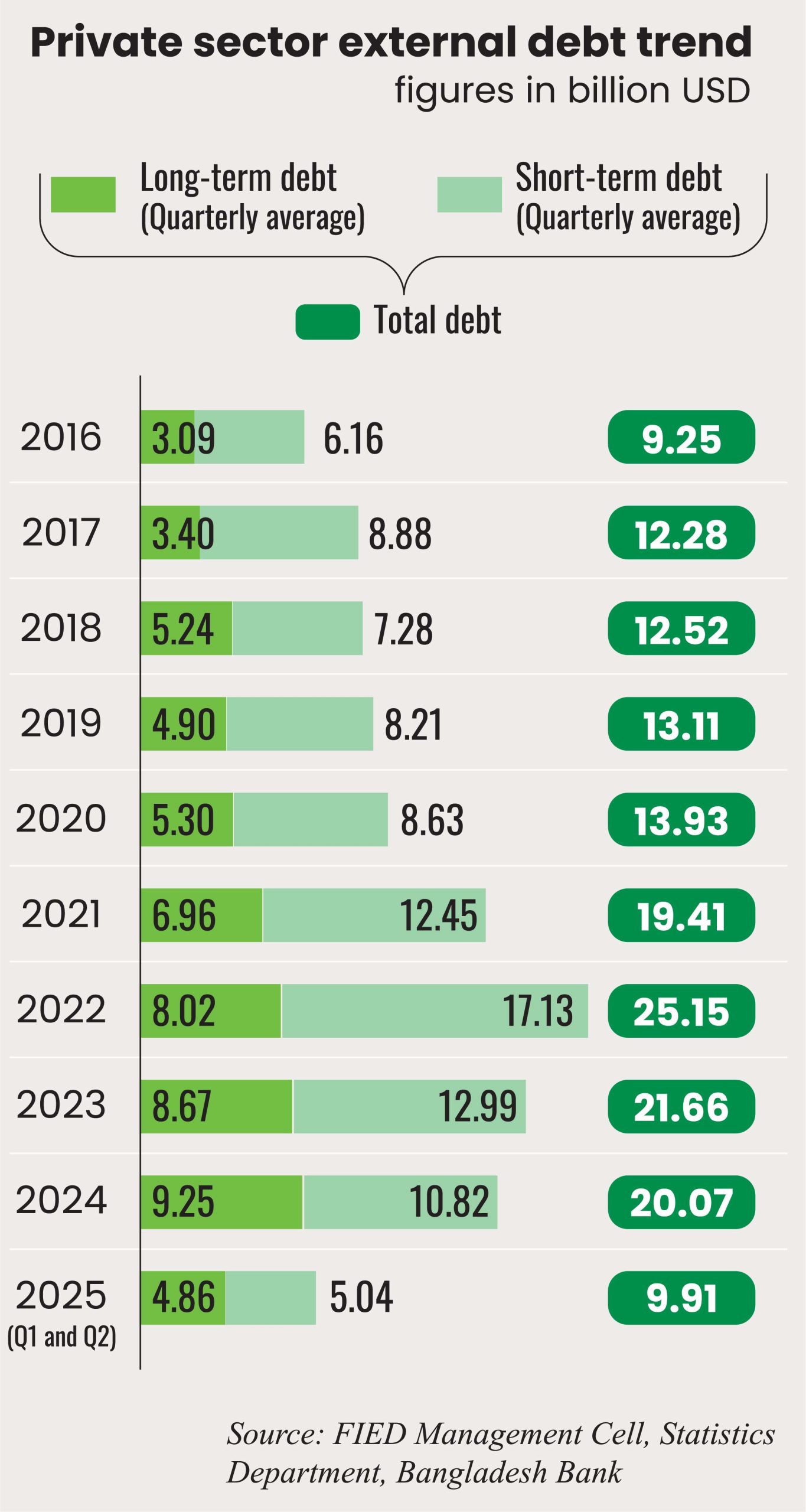 My personal opinion is that Bangladesh has too many banks relative to the size of its economy. This number, along with the high number of Non-Bank Financial Institutions (NBFIs), should be reduced through a defined process.