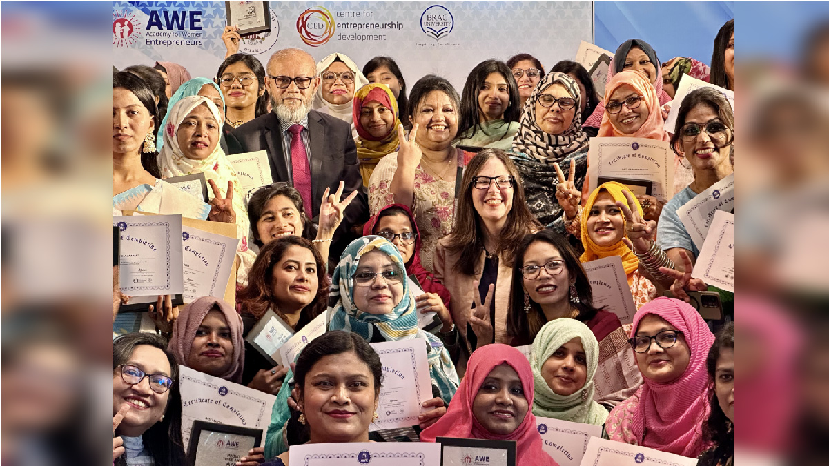 The U.S. Embassy Dhaka, in partnership with BRAC University’s Center for Entrepreneurship Development (CED), celebrated 90 aspiring women entrepreneurs on completing the Academy for Women Entrepreneurs (AWE) program at the university’s campus in Badda today.