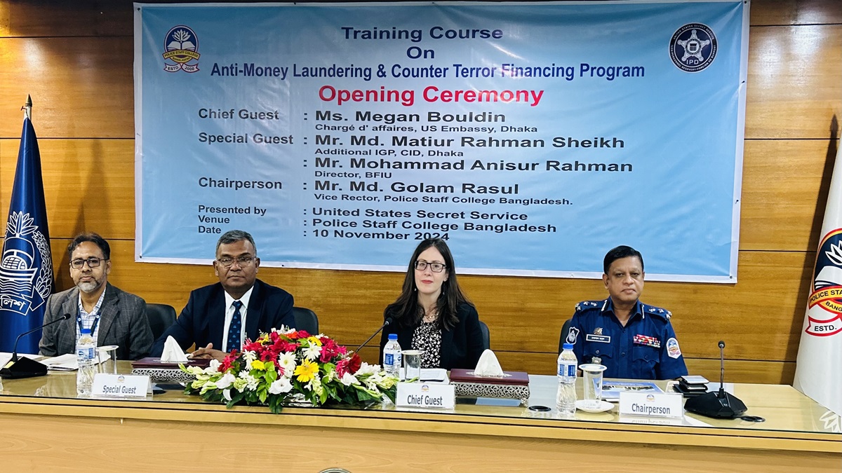 The U.S. Embassy in Dhaka, in collaboration with Bangladeshi law enforcement agencies, launched a comprehensive Anti-Money Laundering and Counter-Threat Finance (AML/CTF) training program at the Police Staff College.